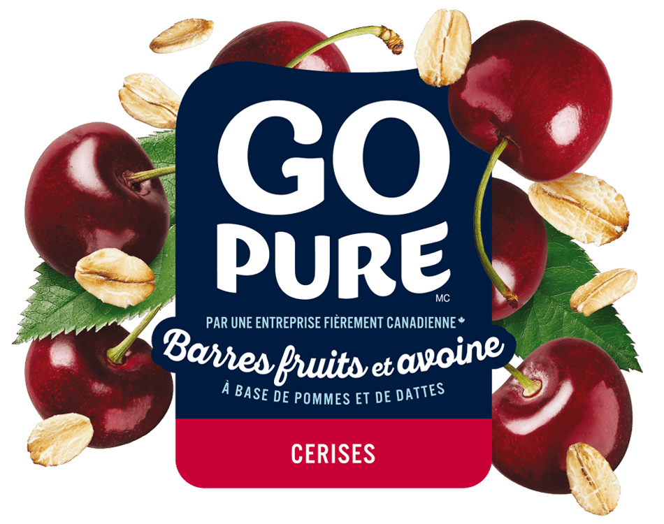 Le goût savoureux des cerises bien mélangé avec les bienfaits de l’avoine. Une barre innovante et santé, faite avec de vrais fruits qui contient 8 g de grains entiers, et est une source de fibres. Elle est certifiée sans arachides et parfaite pour la boîte à lunch! Go Pure, Purement bon!