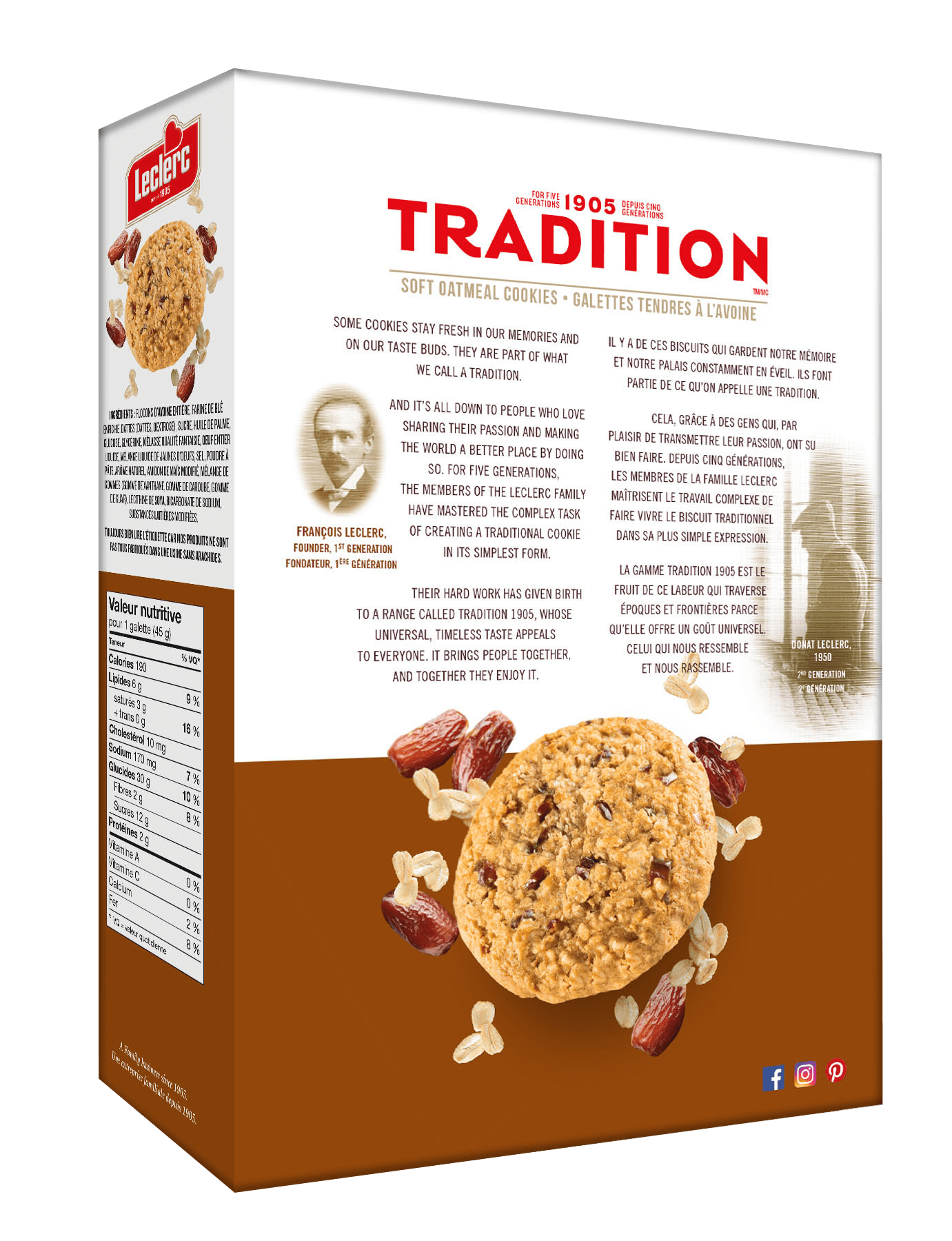 Galette à l’avoine aux dattes tendre et goûteuse. C’est la collation parfaite pour la boîte à lunch car ces biscuits sont une source fer et sont certifiés sans arachides. On les aime aussi pour leur portabilité (6 sachets par boîte).