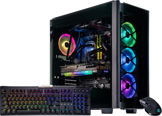An awesome gaming PC that delivers top-tier performance to dominate VR games and the latest AAA titles at resolution up to 4K. All parts come from top brands — including the ASUS ROG STRIX motherboard, EVGA graphics card, G.Skill rgb-illuminated RAM, and Intel SSD — all in the Corsair Obsidian Series 500D RGB mid-tower case giving an attractive view of your components bathed in fantastic RGB lighting.