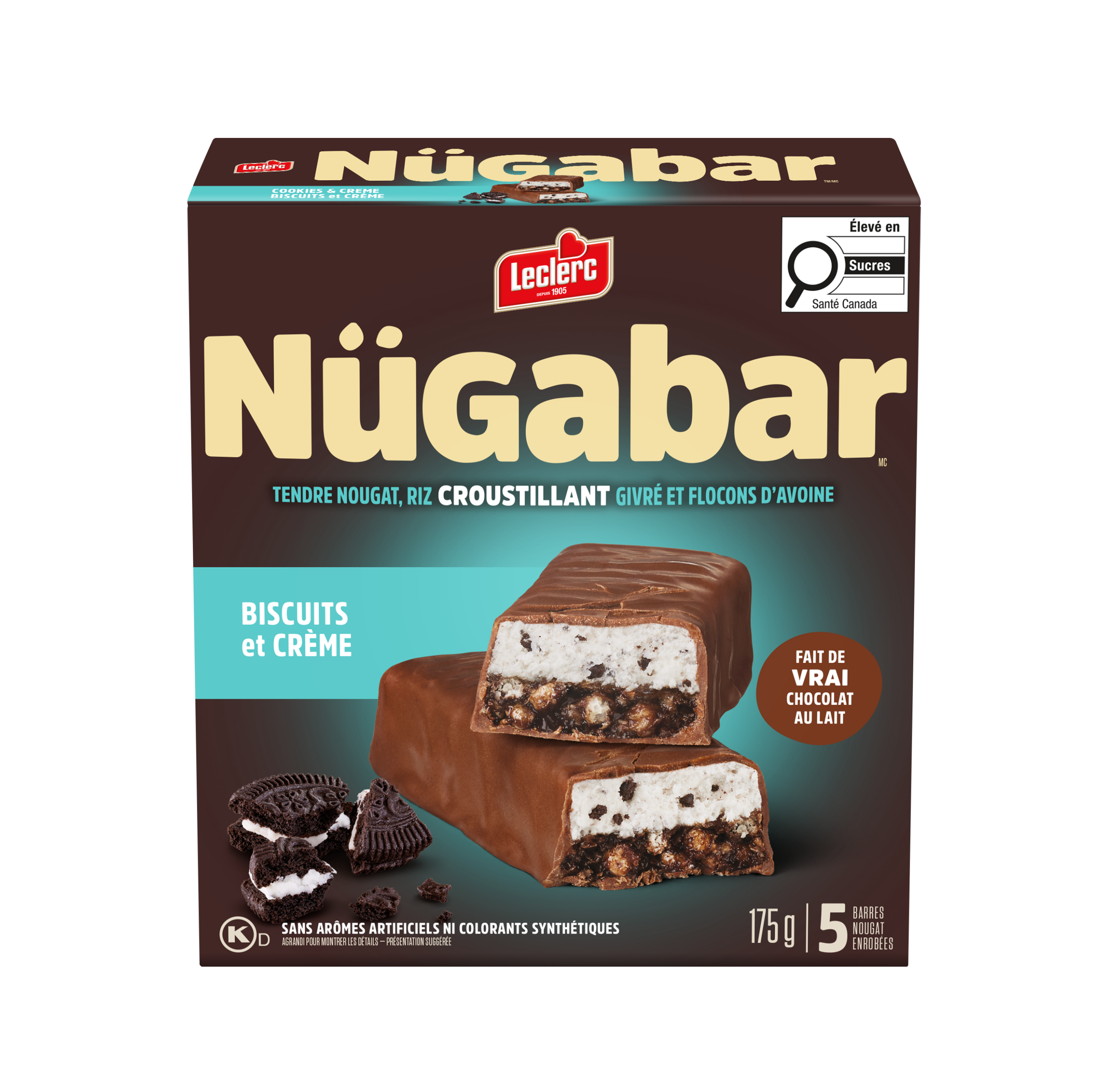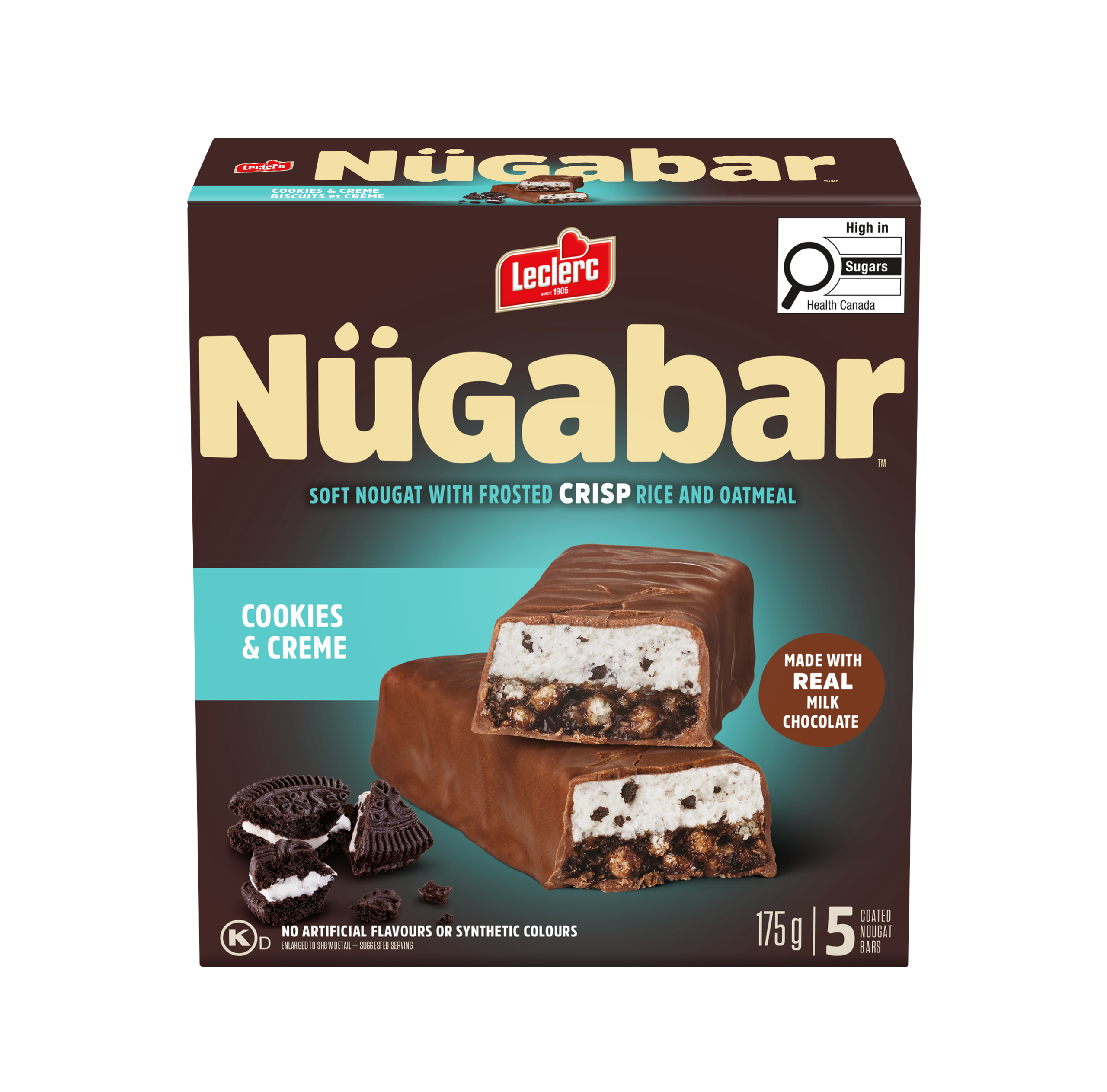The Cookies & Creme bar is a delicious blend of Tender Nougat, Frosted Crisp Rice and Oatmeal all covered in Real Milk Chocolate. Discover the unique texture of Nügabar.